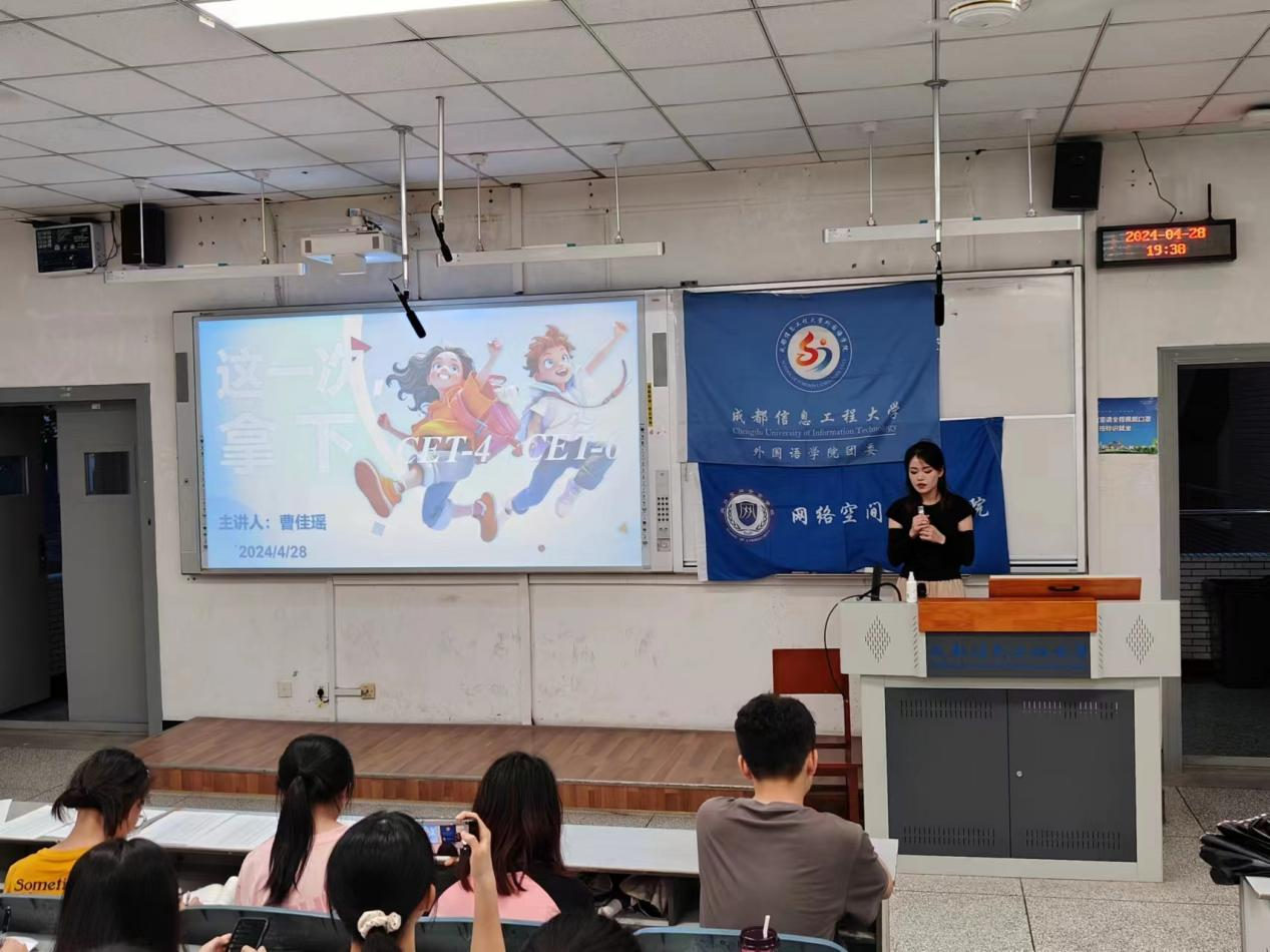 2024年4月28日晚19:30,由外国语学院和点点taptap官方网站联合举办的英语四、六级学习经验交流会在H1108教室成功举办。此次分享会活动旨在帮助同学们提高大家英语学习能力,帮助大家对四六级的复习有更好的认识。外国语学院团委书记达苗老师、点点taptap官方网站团委书记夏焜老师及各学院大一大二同学参加本次活动。外国语学院的陈垣敏和匡玉同学担任此次活动主持人。