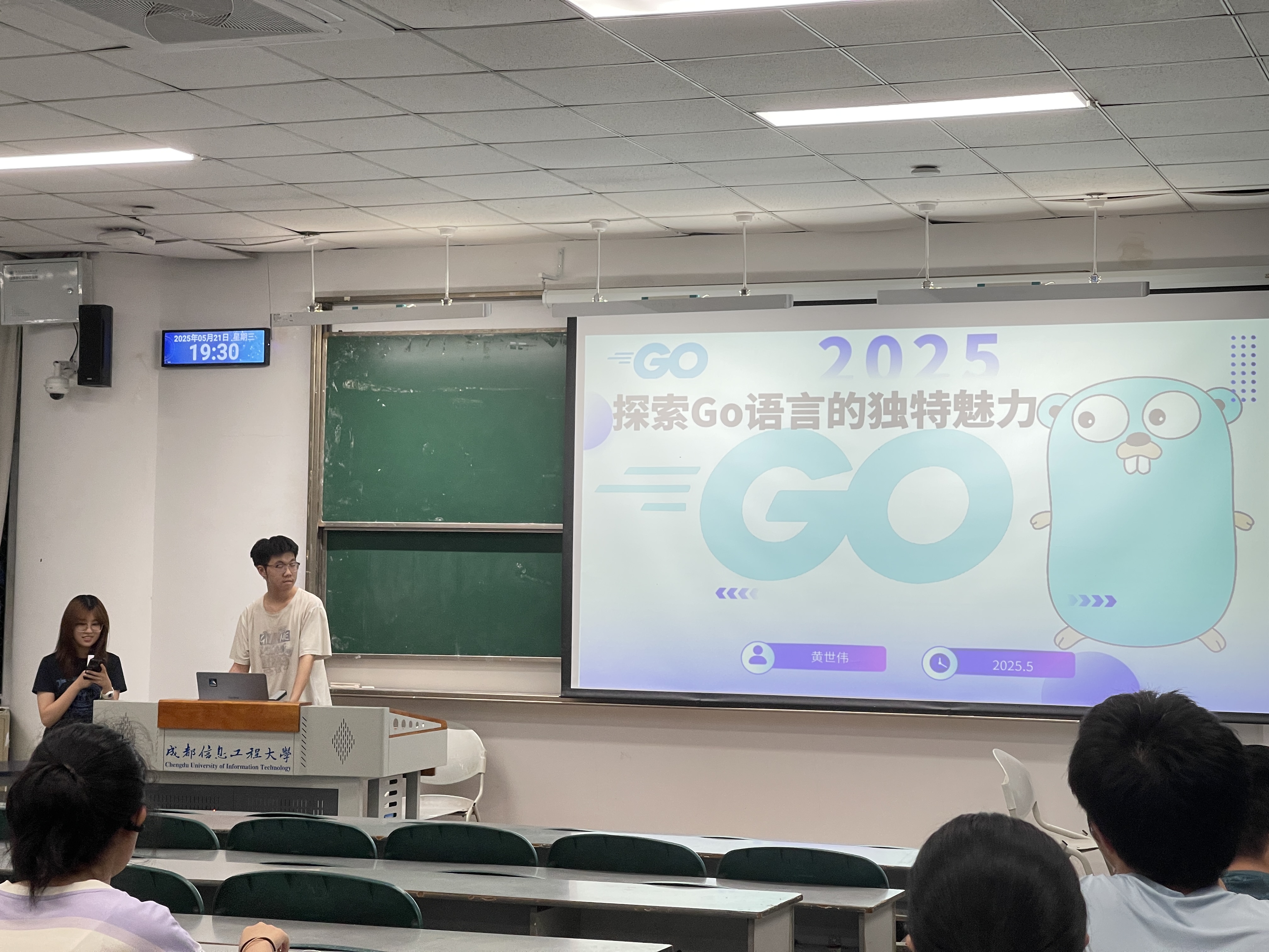 实验室三位核心成员聚焦前沿开发技术进行了精彩分享。首场分享以"探索Go语言的独特魅力"为题,主讲人黄世伟详细讲解了Go语言的函数定义和方法定义,并通过与其他编程语言的对比,突出了Go语言在并发编程等方面的优势。第二位分享者王翔聚焦Android开发基础,以"Android的'门面担当':Activity详解"为主题,详细讲解了Activity的核心概念和使用方法。最后一位分享者刘娜通过生动的爱心代码案例,直观展示了前端HTML页面开发技巧,同时阐释了后端在数据处理和业务逻辑中的关键作用。
