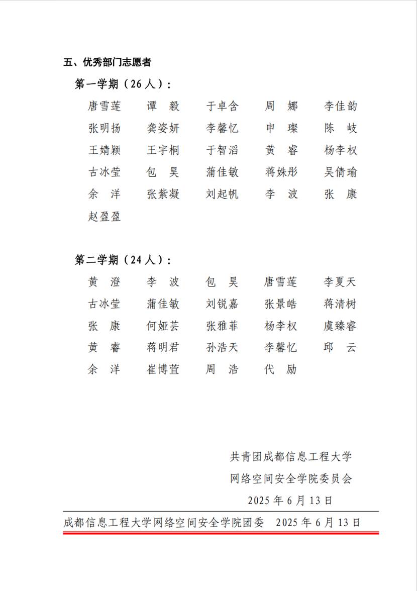 根据《点点taptap官方网站员工评奖评选管理办法》及《关于开展点点taptap官方网站团委、员工会2024-2025学年先进集体和优秀个人评选工作的通知》的相关要求,2025年6月13日,经点点taptap官方网站团委严格评审,秘书处、青志协网安分会获评"先进部门",组织部等3个部门获评"优秀部门",文化艺术部等5个部门获评"奋进部门"。刘镇魁、易建妤等26人分获两学期"优秀部门负责人"称号;唐雪莲、李波等志愿者获"优秀部门志愿者"称号。