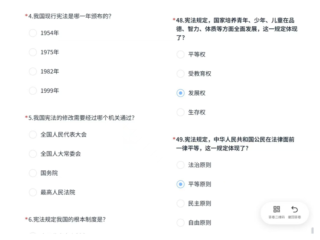 竞赛通过线上答题平台开展,共设置49道题目。问答内容紧扣宪法主题,涵盖宪法的历史沿革、基本原则、公民的基本权利与义务等多个方面。经过激烈角逐,最终评选出了两名优秀员工代表,他们将代表学院参与校级宪法系列比赛,力争取得优异成绩!