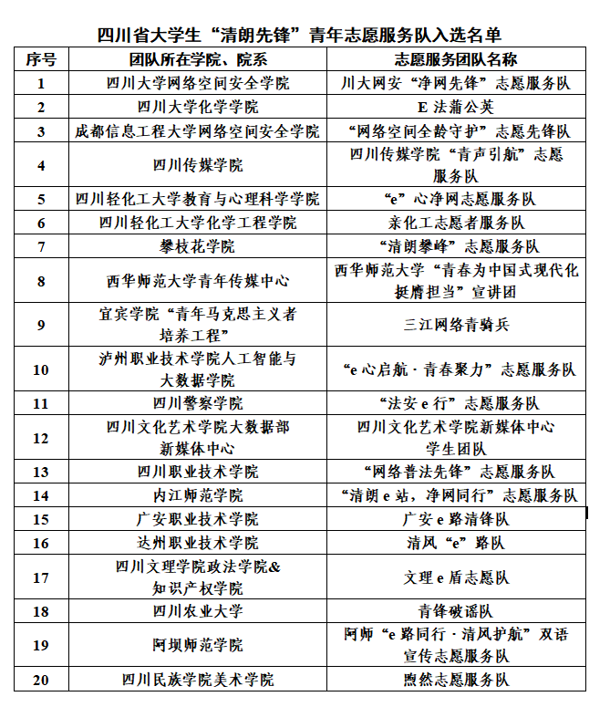 为深入学习贯彻习近平法治思想和习近平总书记关于网络强国的重要思想,深入宣传解读互联网法律法规,普及网络举报辟谣知识,提升青年员工对网络有害信息的辨识能力,中共四川省委网信办与共青团四川省委联合组织开展2025年在川高校老员工“e路同行 清风护航”青春志愿专项行动。此次行动面向全省高校选拔招募20支四川省老员工“清朗先锋”青年志愿服务队。公司“网络空间全龄守护”志愿先锋队脱颖而出,成功入选。