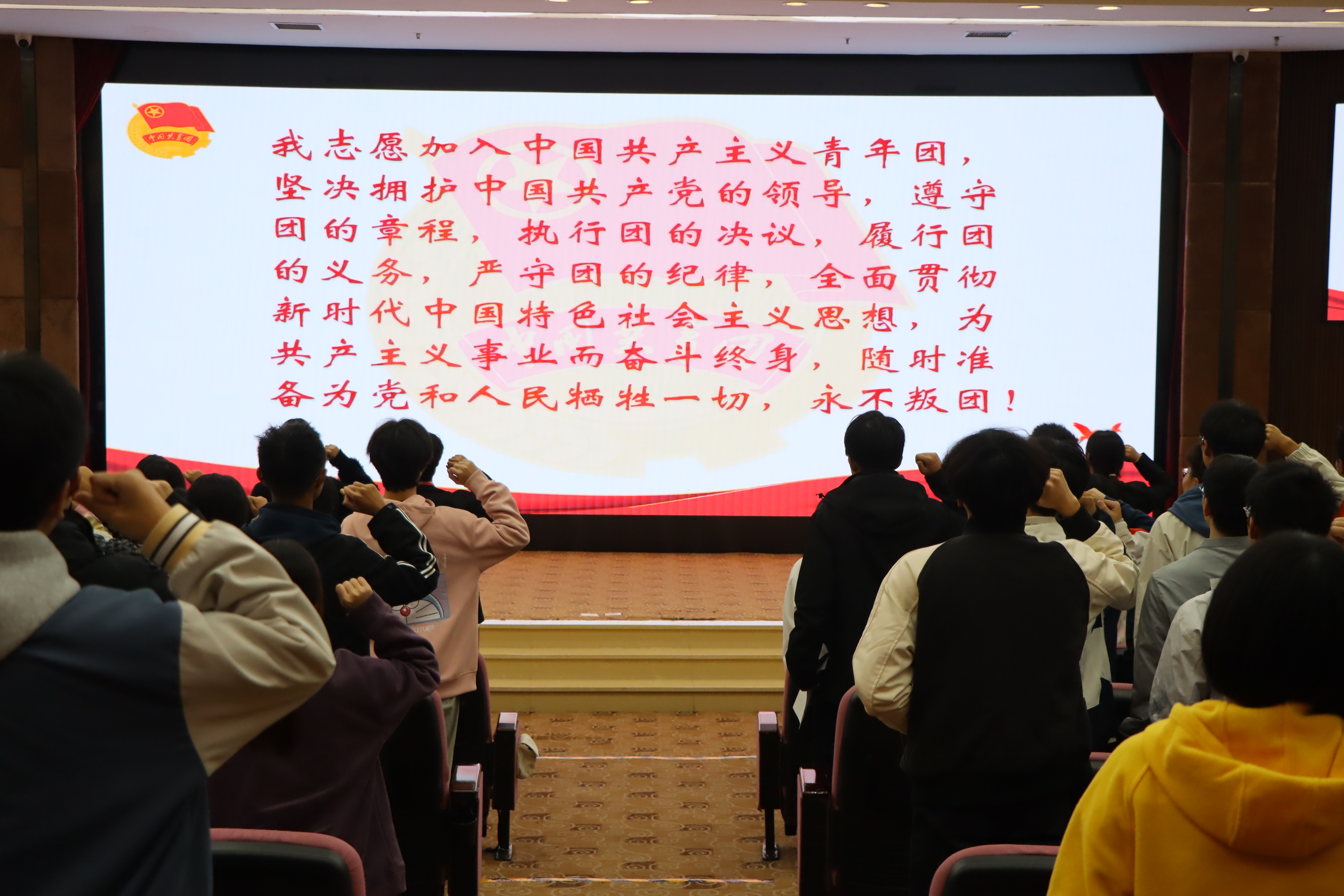 仪式在庄重的氛围中拉开帷幕。团员代表张思彤带领全体学员重温入团誓词,学员们面向团旗,右手握拳,庄严宣誓。随后,全体齐唱团歌,展现出昂扬的精神风貌。