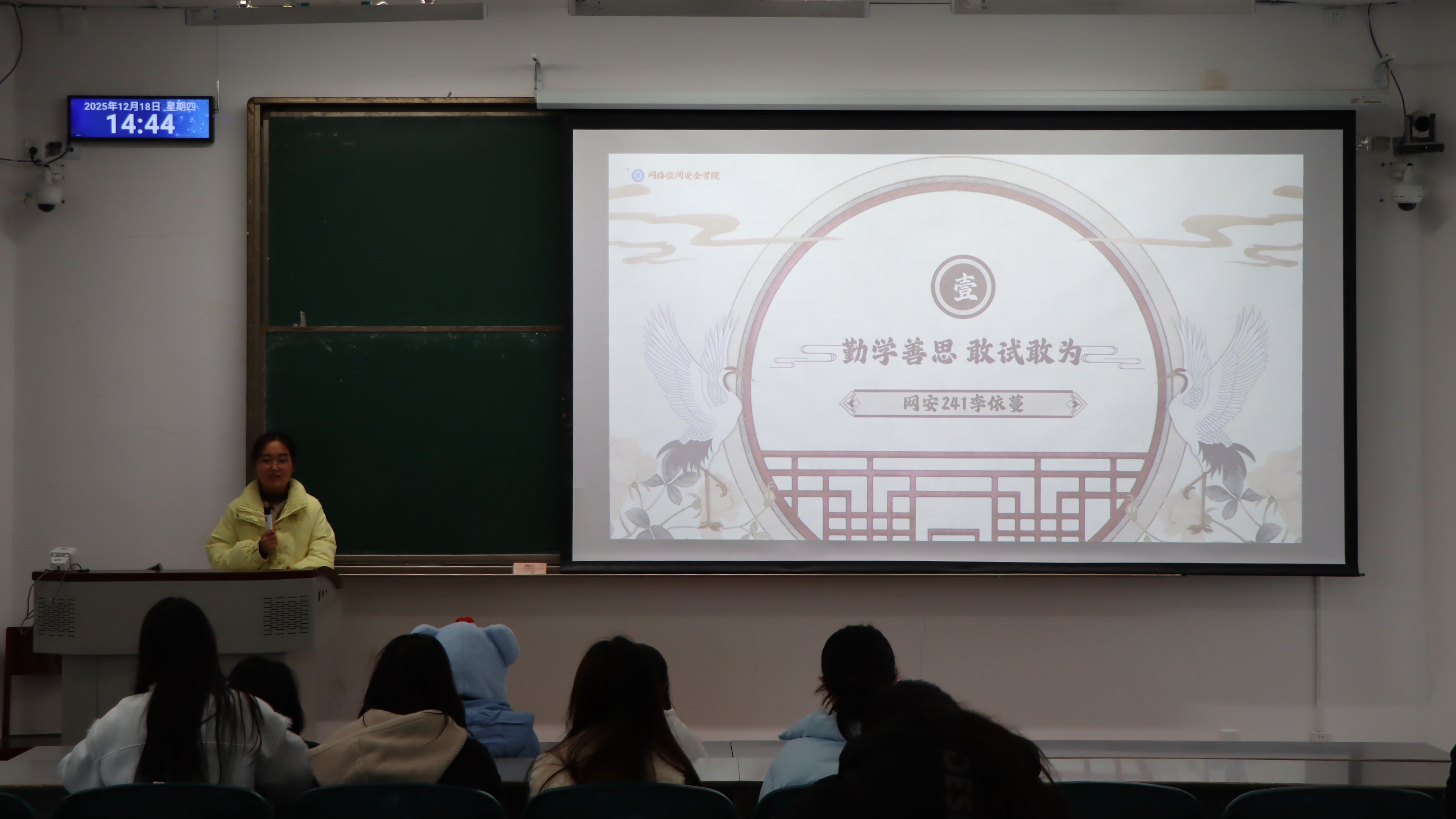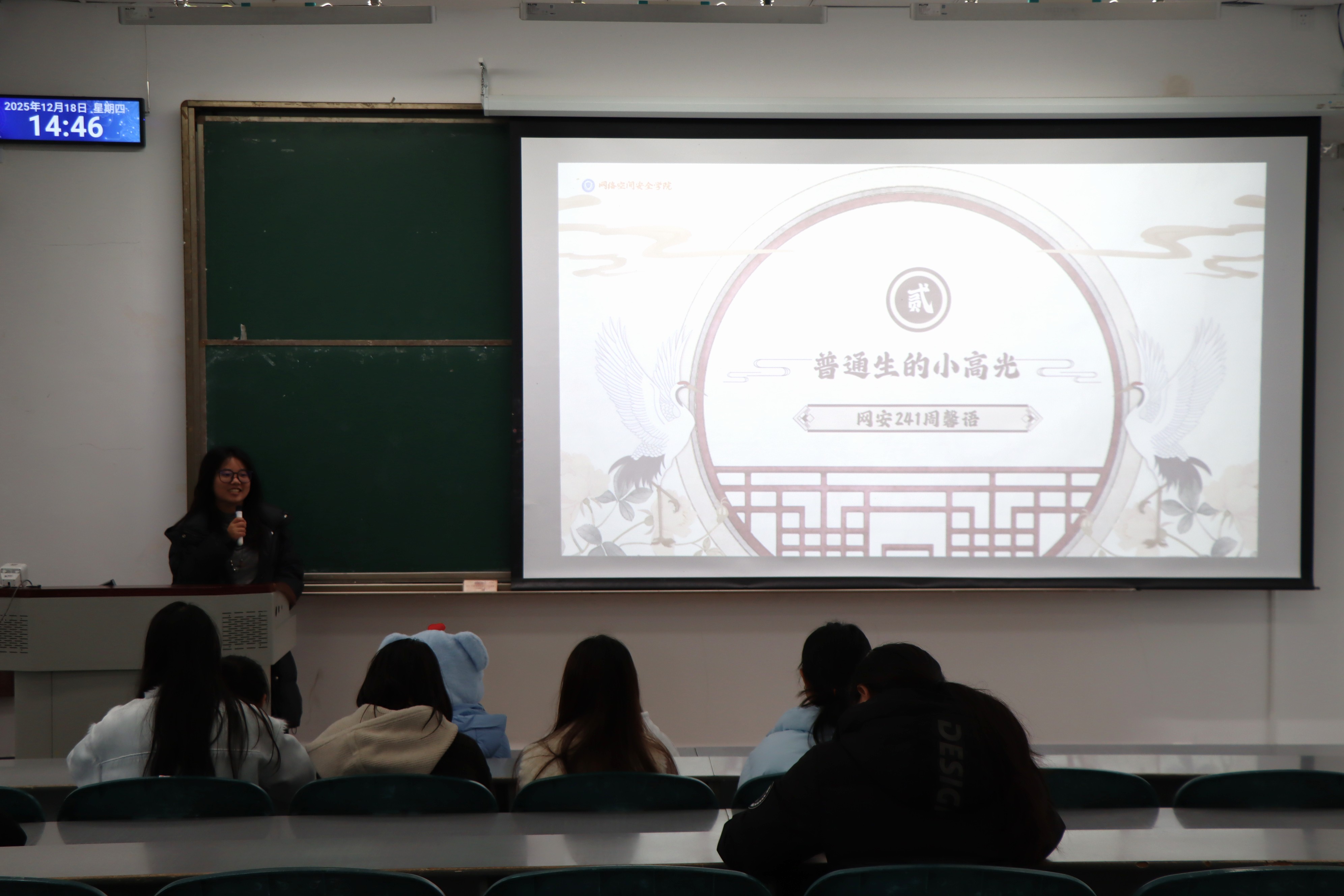 分享会上,网安241班李依蔓结合个人学习经历,讲述了从基础薄弱到稳步提升的逆袭故事,网安242班黄睿介绍了“目标分解+错题复盘”等高效学习方法。网安241班周馨语解答在学习过程中如何增强自己学习的动力,信安243班周浩针对C语言、线性代数等重点课程分享学习经验,信安244班钟瑾微分享了“碎片化时间攻坚+整块时间复盘”的学习策略。
