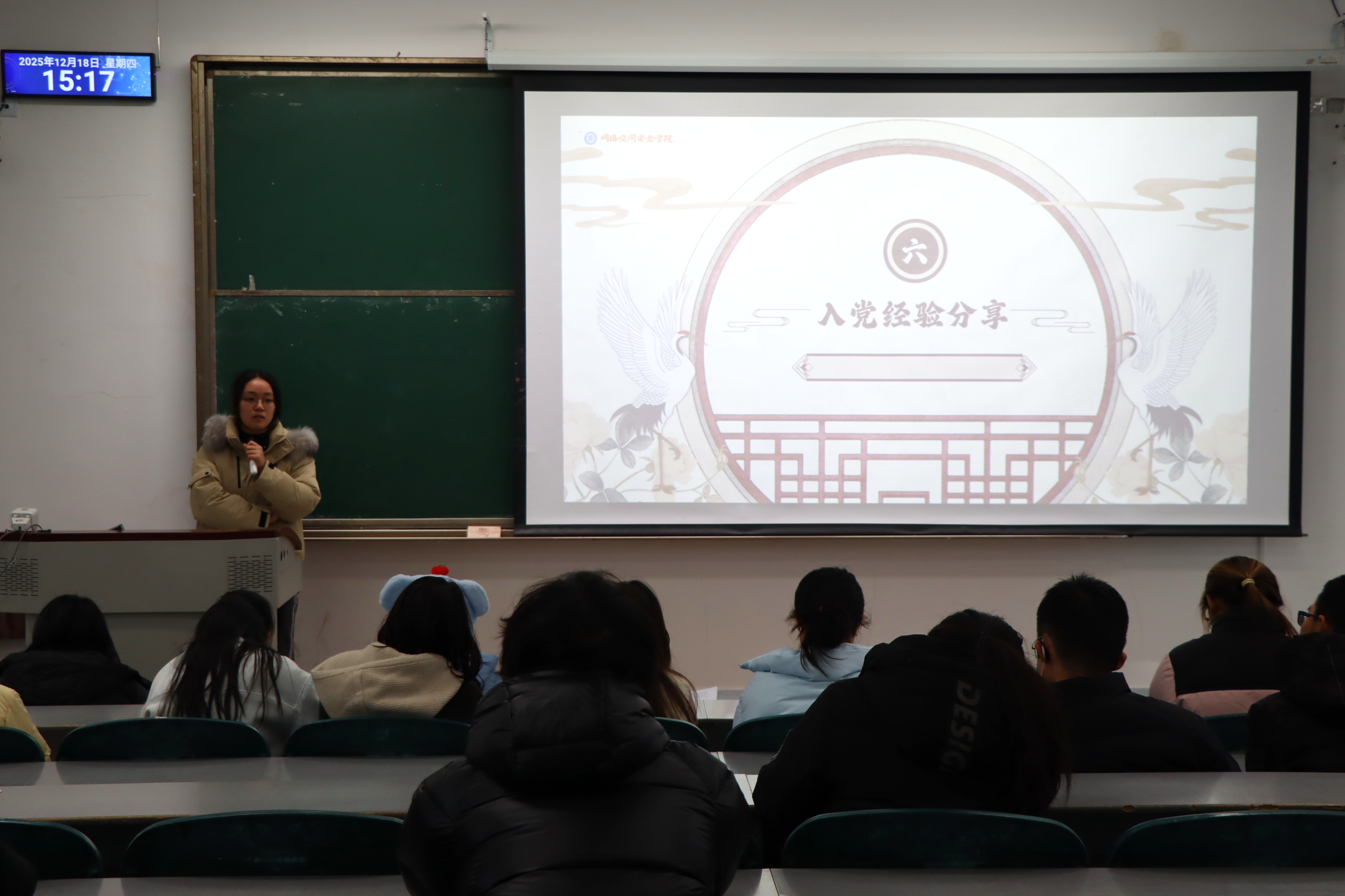 在党员分享环节,信安234班袁莉结合自身经历,解答了“为什么入党”“如何入党”等同学们普遍关心的问题,并强调将理论学习与社会实践、志愿服务相结合的重要性,为有意向入党的同学指明了行动方向。