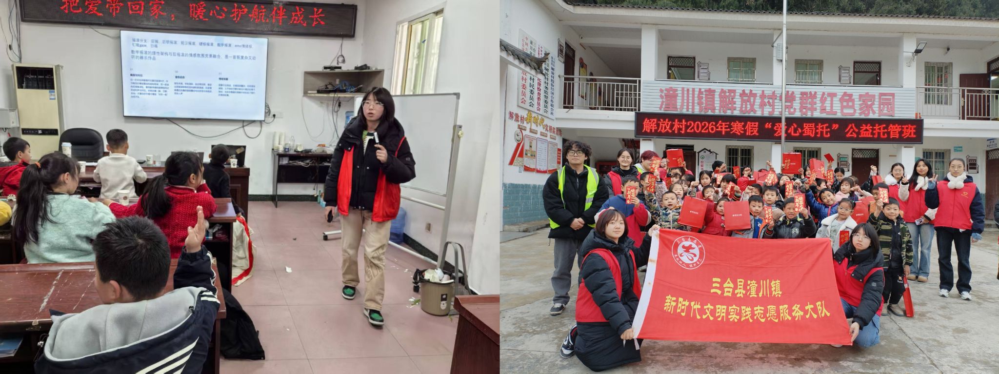 2月2日至2月9日,我在绵阳市三台县解放村“童伴妈妈”寒假“蜀”托班参加实践。活动期间,我们兼顾安全看护与课业辅导,同时组织了科普课程、趣味化学实验、手工绘画及户外游戏等多元活动,致力于为孩子们打造一个安全、快乐、有意义的假期。短短几天的相处,孩子们给予了我珍贵的信任,也让我真切感受到社会责任的分量。这段经历让我对教育多了一份敬畏,更坚定了以微光温暖他人的信念。